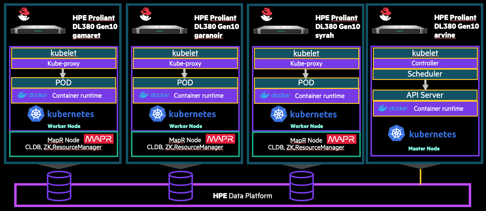 - 1 MapR Data Fabric cluster 6.2 with 3 nodes , the same nodes for kubernetes cluster