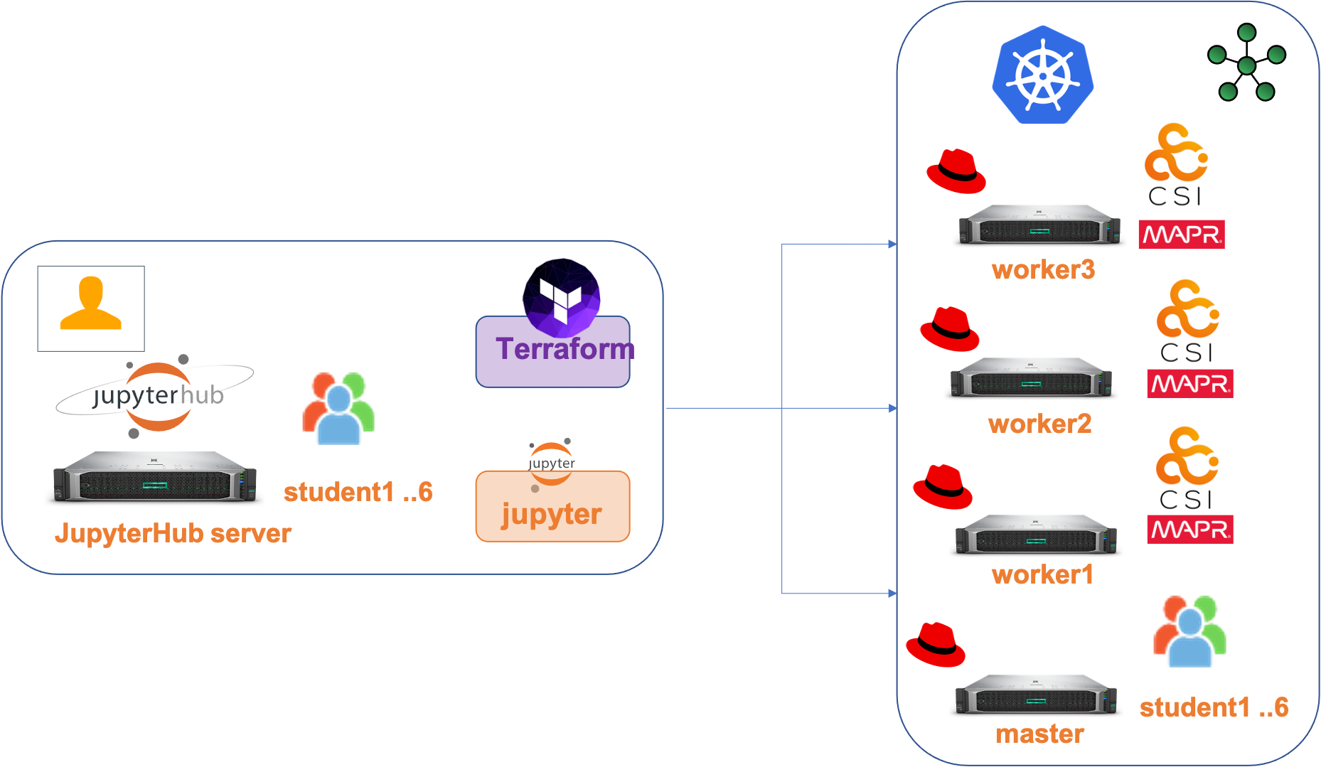 - Create the same user used in your JupyterLab-JupyterHub environment on your master node of your kubernetes cluster.