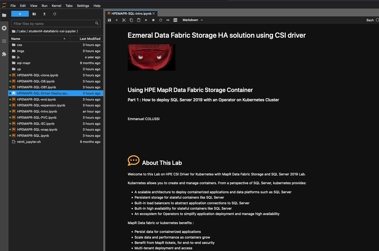 Welcome to this Lab on HPE CSI Driver for Kubernetes with MapR Data Fabric Storage and SQL Server 2019 Lab.