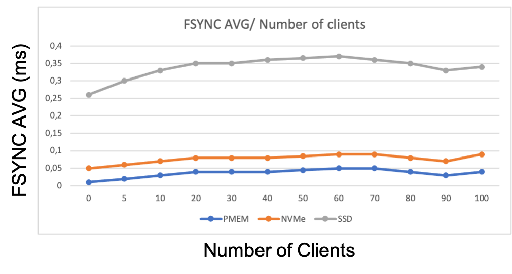 The results show that the different storages perform as expected, with the SSD being the slowest, the NVMe much faster and the PMEM even faster. The SSD showed fsync times of less than 0.5 ms (the etcd documentation suggests that the fsync time should be less than 10 ms). We can conclude that all tested storage options meet the need for etcd well, including the SSD.